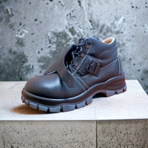 Верх: юфть, мягкий кант, глухой клапан - ИК. Клапан, закрывающий шнуровку - натуральная кожа с металлической пряжкой. Подкладка: нетканый материал CAMBRELLA. Подошва: ПУ/ТПУ. Метод крепления подошвы: литьевой. Подносок: металлический Мун200. Задник: усиленный из термопластического материала 1,5-1,8 мм. Шнуровка через металлические петли. Высота ботинок: 12-13 см. Защитные свойства - ТрТиТпМун200