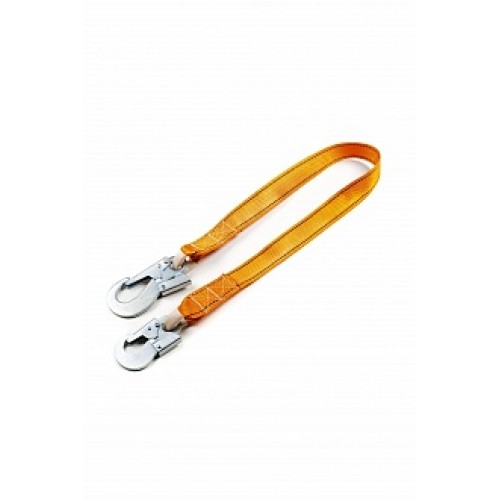 Строп ленточный с двумя карабинами на концах. Может применяться как отдельная соединительная деталь, узел или компонент в системе с привязями и с анкерной точкой. Дополнительно может комплектоваться амортизатором и регулирующей длину пряжкой. Вес стропа не более 1,2 кг. Длина стропа: 1,45 м +\- 50 мм. Под заказ изготавливается от 1200 мм до 2000 мм. Срок службы стропа 5 лет. Статическая разрывная нагрузка стропа не менее 22кН. ТР ТС 019/2011