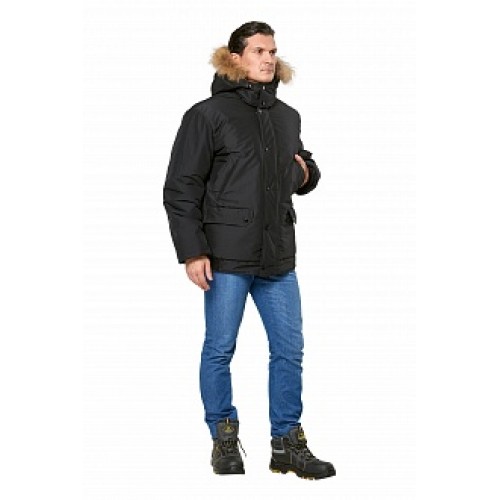 Куртка укороченная с притачным поясом с боковыми вставками из трикотажа. Центральная застежка на двухзамковую молнию, с внешней и внутренней ветрозащитной планкой. Воротник-стойка, утепленный трикотажем. Пристегивающийся капюшон с опушкой из натурального меха. Объем капюшона регулируется в затылочной части при помощи хлястика с настроченной контактной лентой, по лицевому срезу резинкой-шнуром с фиксаторами. Утепленные синтепоном нижние карманы и два теплых нагрудных кармана с застежкой на молнию. Один внутренний карман. На левой полочке под внешней ветрозащитной планкой расположен карман формата А-4, застегивающийся на молнию, предназначенный для документов, планшетов. В нижней части левого рукава расположен прорезной карман, застегивающийся на молнию, предназначенный для мелких предметов (пропуск, проездной билет , эл.ключи и т.д).Рукава с трикотажными напульсниками. Искать зимнюю одежду рекомендуем в категории зимняя спецодежда. Стеганый подклад. Класс защиты: 2 (III климатический пояс).