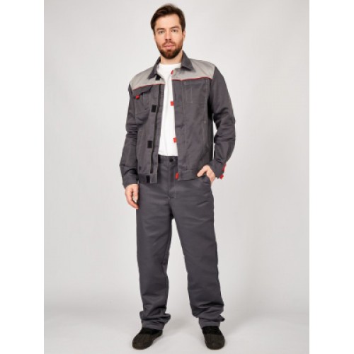 Куртка укороченная на поясе, с застёжкой на скрытую молнию и контактную ленту. Два накладных нагрудных кармана, на левой полочке карман с клапаном, застегивающимся на контактную ленту, напротив каждой - контрастные флажки для более удобного расстегивания, рукав на притачной манжете с застежкой на контактную ленту "липучка" и усилительными локтевыми накладками. Кокетки полочек выделены контрастным кантом, два боковых кармана в рельефных швах полочек. Воротник отложной.
