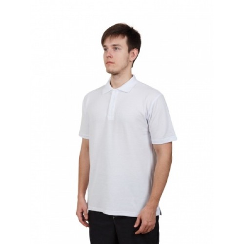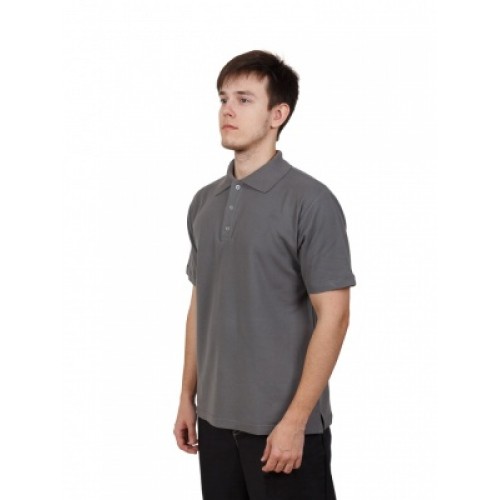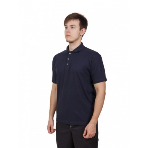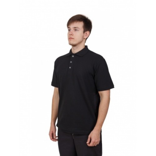 Трикотажная рубашка поло прямого покроя, с коротким втачным рукавом, отложным в резинку воротником и планкой с застежкой из трех пуговиц.