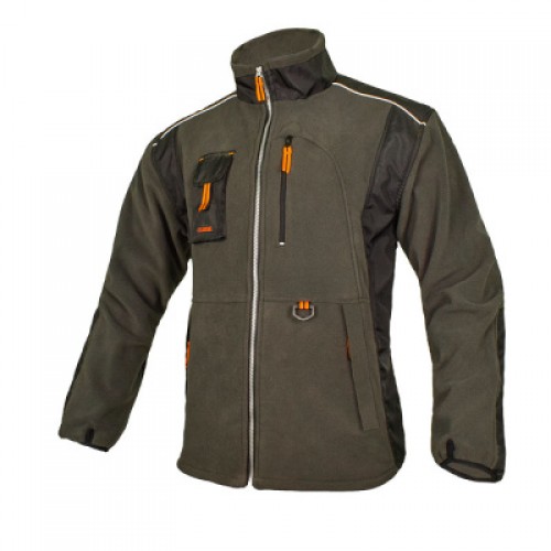 Куртка из флиса, черные усиления в области локтей, предплечий, по бокам куртки и на рукавах из материала 600D.