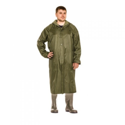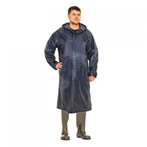 Центральная застежка на кнопках, без карманов. Есть капюшон. По низу рукава – без резинки. Все швы изделия проклеиваются с изнаночной стороны, что позволяет увеличить срок службы и обеспечивает защиту от проникновения влаги. Данный вид верхней одежды предназначен как для защиты от воздействия атмосферных осадков, так и от механических факторов.